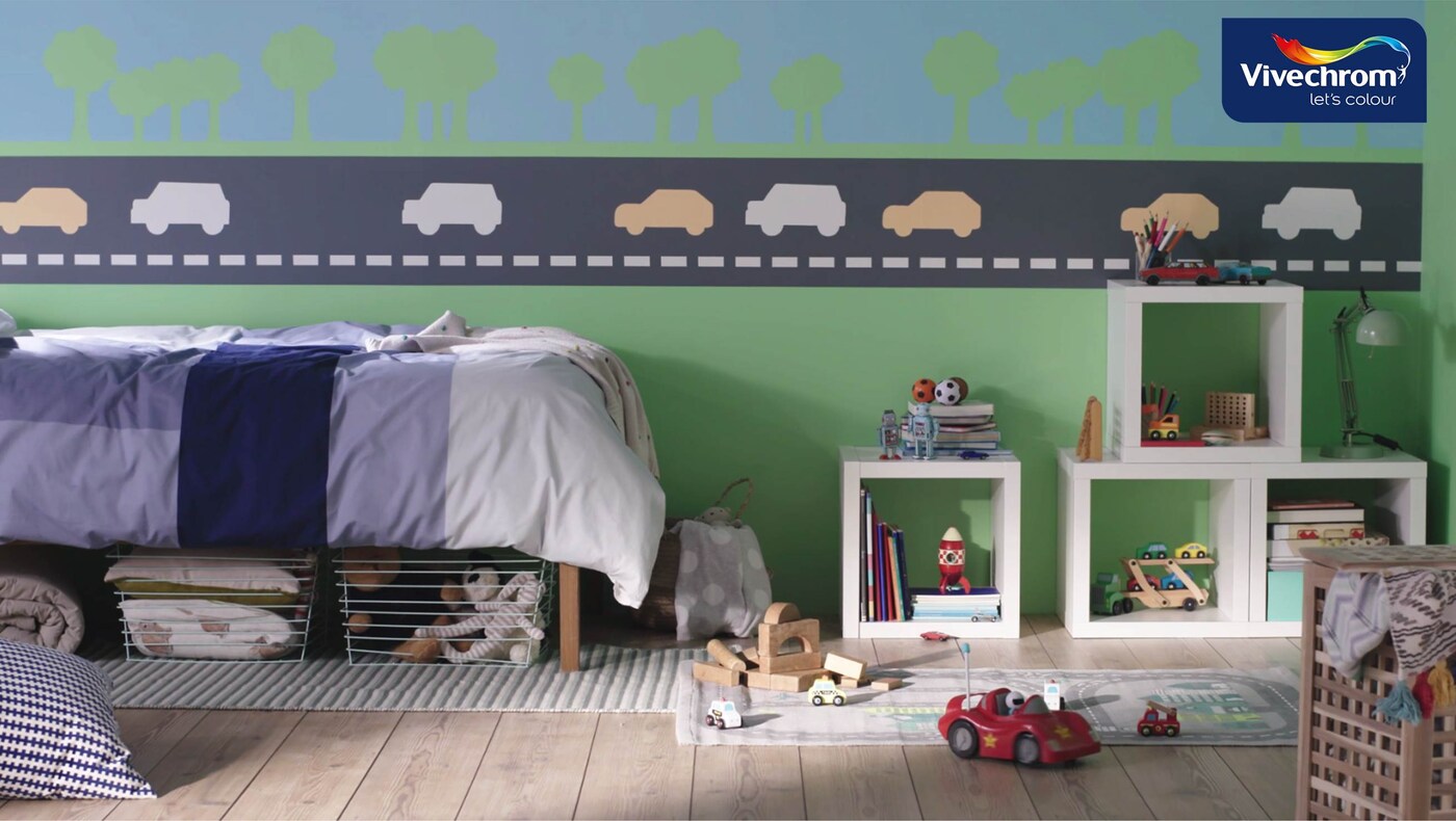 Δωμάτιο Αυτοκινητόδρομος και φύγαμε για βόλτα! Aν αναρωτιέστε "τι χρώμα να βάψω το δωμάτιο του γιου μου;" πάρτε έμπνευση από τις υπέροχες ιδέες για βάψιμο τοίχων παιδικού δωματίου και για χρώματα τοίχου για αγορίστικο δωμάτιο από τη Vivechrom!