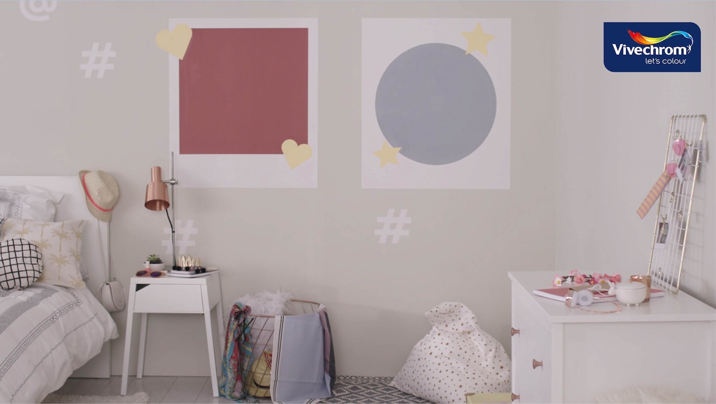 Χαμογελάστε, κάμερα ... selfie! Ένα πρωτότυπο δωμάτιο για κάθε έφηβο κορίτσι με γλυκές αποχρώσεις και στένσιλ που μπορείτε να κατεβάσετε από εδώ: