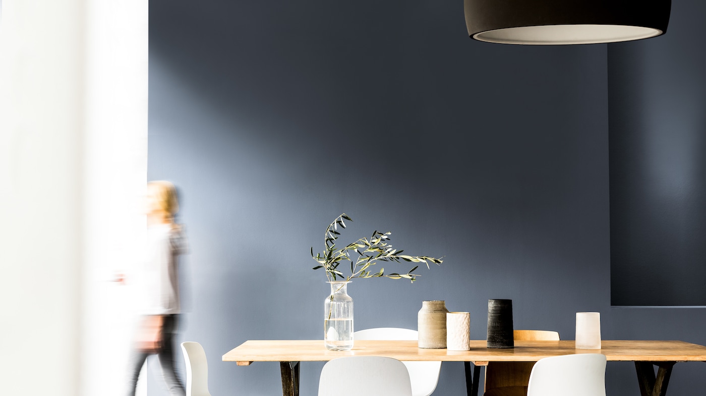 We’re conditioned to believe that darker colours will make a room feel more enclosed. But some darker shades – such as deep, inky blues – are actually recessive, and will make a small room feel much larger, and more spacious, than it really is.